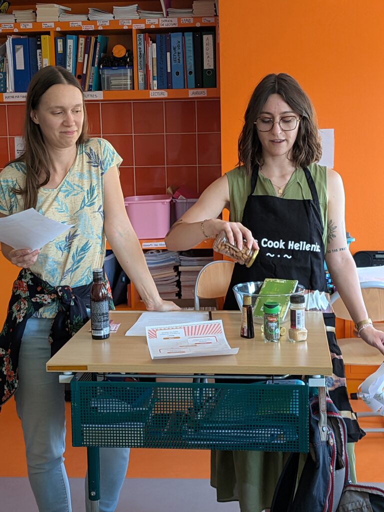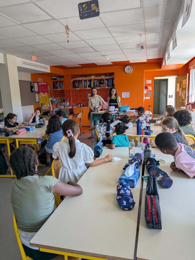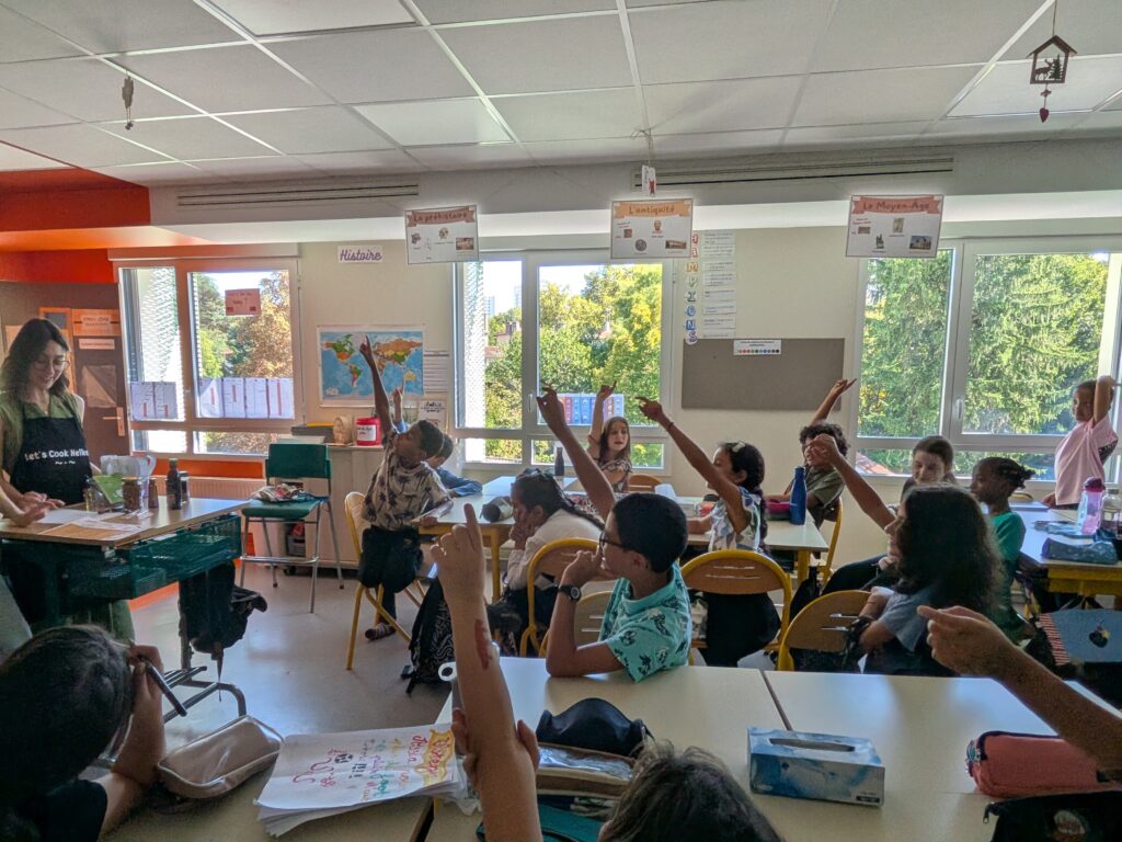 ​À l’Ă©vocation des recettes et des plats, la confusion Ă©tait totale : les Ă©lèves Ă©taient persuadĂ©s que nous allions cuisiner de vrais gâteaux ! L’excitation de mettre la main Ă  la pâte a vite Ă©tĂ© remplacĂ©e par celle de mettre le nez dans les pages.